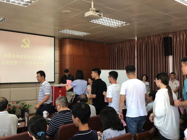 大会在庄严雄壮的国歌中拉开帷幕。大会以无记名差额选举的方式,投票产生了教育研究院党委出席校第十一次党代会代表,他们分别是(以姓氏笔画为序):邬大光、乔连全、闵琴琴、郑冰冰。
