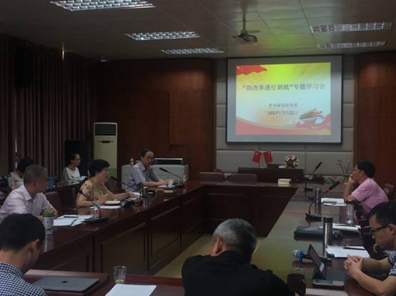 党的十八大以来,以习近平同志为核心的党中央作出了全面深化改革的重大战略部署,出台实施了一系列重大改革方案,重要领域和关键环节改革举措取得重大突破。为全面系统总结和展示改革的进展和成就,中央组织拍摄了10集电视专题片《将改革进行到底》。根据中共中央办公厅《关于认真组织收看电视专题片< 将改革进行到底>的通知》。2017年7月21日上午,502会议室,学院党委紧扣改革发展主题,以共同研讨的形式召开收看、讨论《将改革进行到底》中心组学习(扩大)会议。