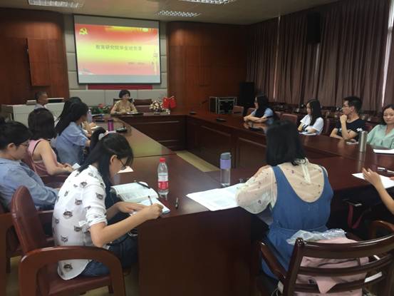 凤凰花开,骊歌唱响。在2017届毕业生即将离开学校各自奔向远方之际,6月15日下午,教育研究院毕业班党员党课以及入党宣誓仪式在502会议室顺利举行。此次党课由我院党委书记郑冰冰主讲,党委副书记陈文主持入党宣誓仪式,全体毕业班党员以及其他年级的新转正党员参加了党课和宣誓。