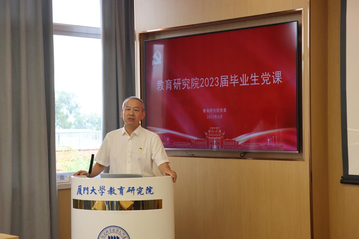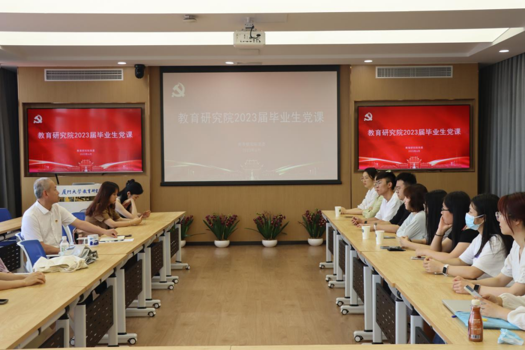 在毕业生们即将踏上人生新的征程之际,6月14日下午,我院在黄宜弘楼502报告厅举行教育研究院2023届毕业生专题党课暨廉洁教育活动,引导青年学生坚定理想信念,增强廉洁意识,扎实走好迈向社会的第一步。院党委副书记姚有新为毕业生党员上了一堂深刻而又生动的专题党课。党课由院团委书记赖珊珊主持。