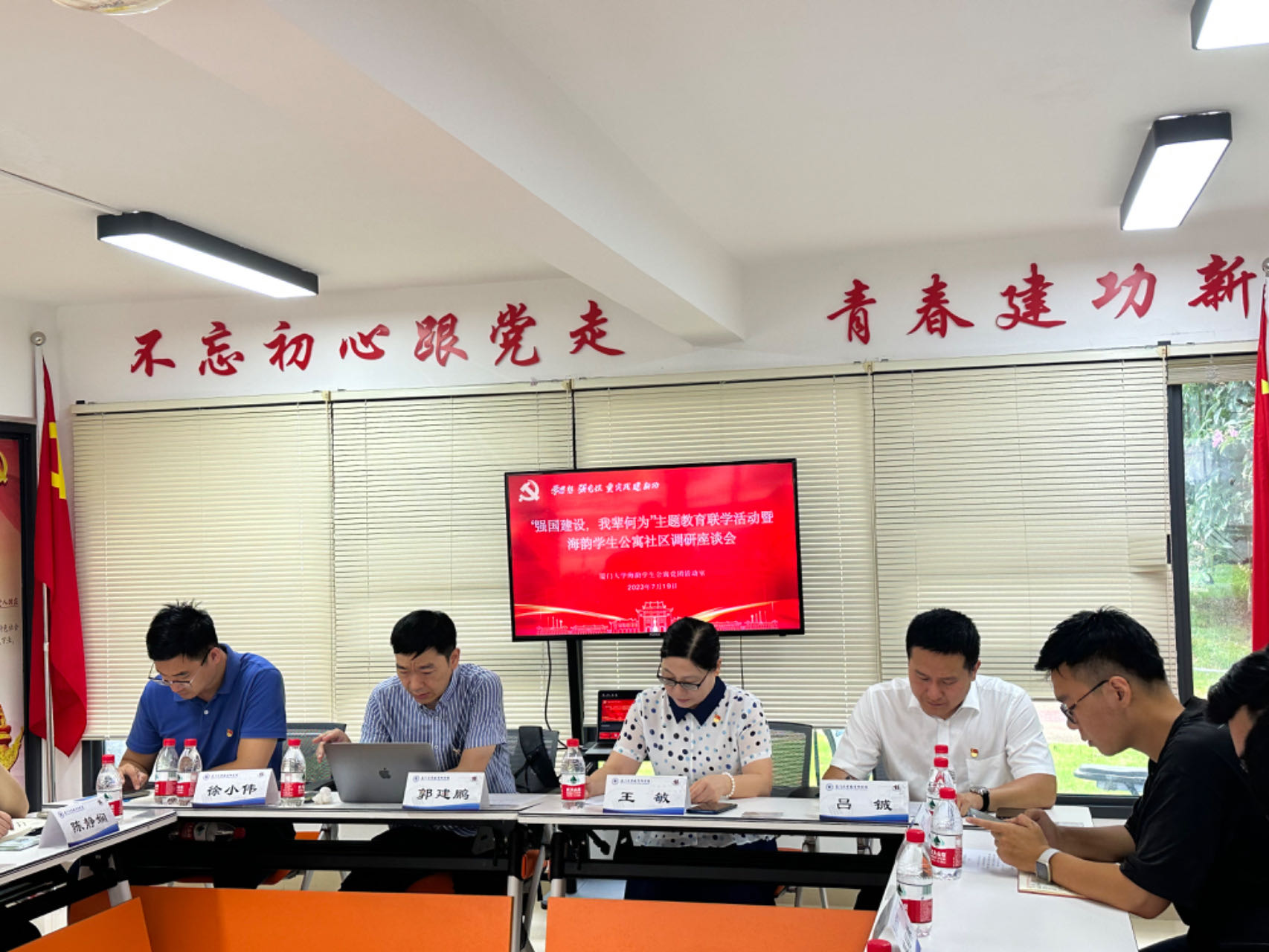2023年7月19日上午,一场题为“强国建设,我辈何为”主题教育专题联学活动暨海韵学生公寓社区调研座谈会在厦大学生公寓海韵园区14号楼“一站式”学生社区党团活动室里举行。