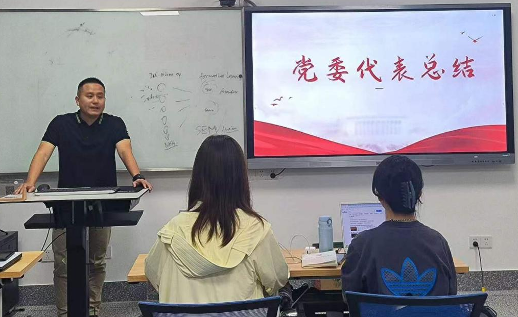 首先,党支部书记贾晨带领同学们回顾张荣书记报告的核心内容。随后,党员代表进行心得分享。兰田玉同志认为,我们正在面对第四次工业革命,一流大学是一流人才的汇集地,国家的发展也是无数个“我”构成,我们党员必须以身作则,深刻把握国家发展的大趋势,主动担当作为,将个人的知识与社会实践相融合,将自身的知识和能量最大化发光发热,为中国式现代化发展贡献个人力量。刘倩同志认为张荣书记的报告中扩展了大学三职能,增添了大学文化创新、国际交流合作两个内容,认为一流大学植根于各国的现代化实际和文化土壤,各个高校要根据实际进行改革创新。党员代表发言结束后,与会党员也逐一分享自己的学习体会,展开交流讨论。