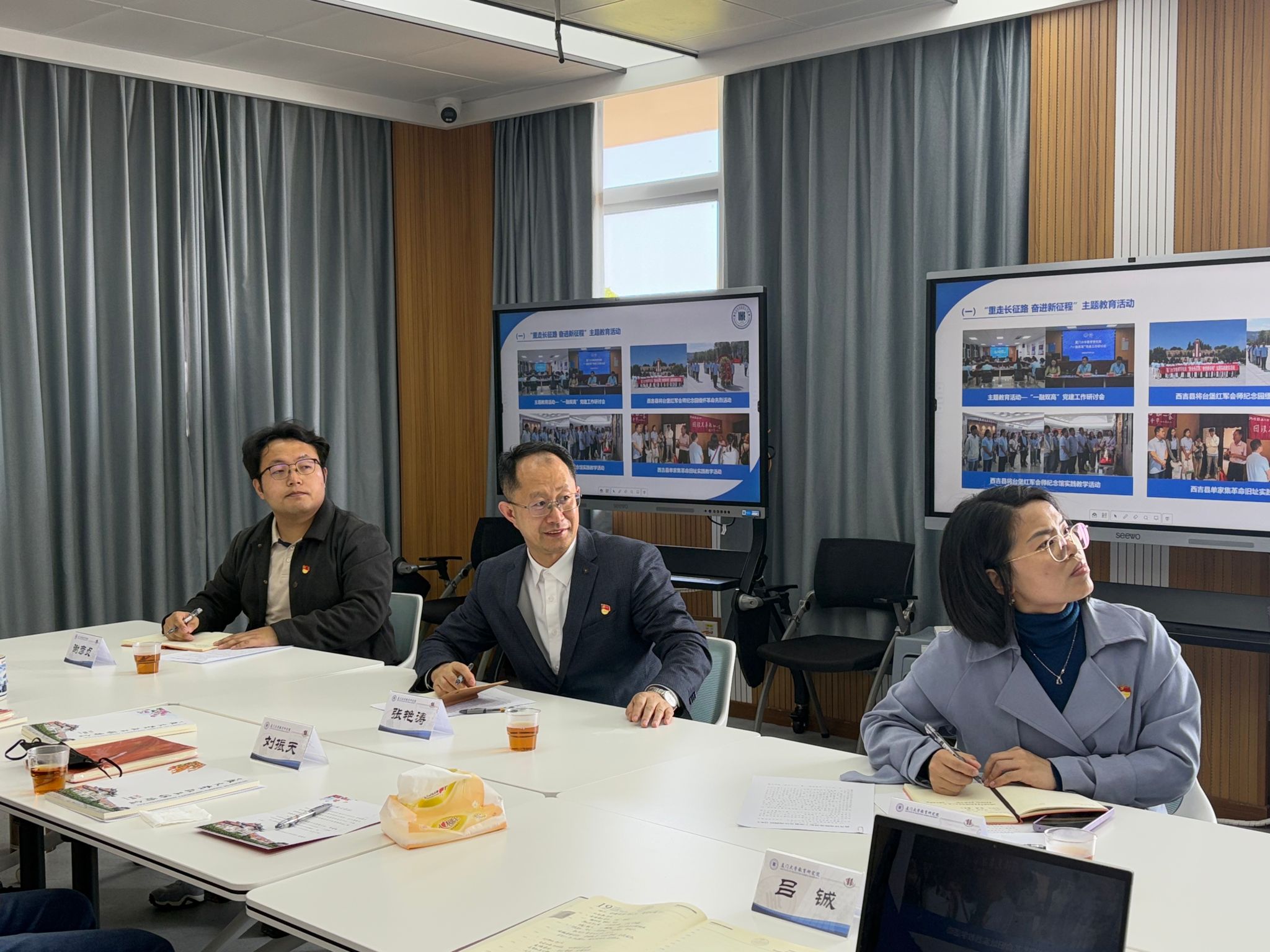 为深入学习贯彻党的二十届三中全会精神,充分了解基层党委党员和干部教育培训开展情况,2025年3月19日下午,厦门大学党委党校副校长张艳涛教授一行莅临教育研究院调研,座谈会在黄宜弘楼401室召开,教育研究院党委书记刘振天主持会议,校党委党校秘书谢媛、谢彦贞,院党委副书记姚有新、党务秘书吕铖参加会议。