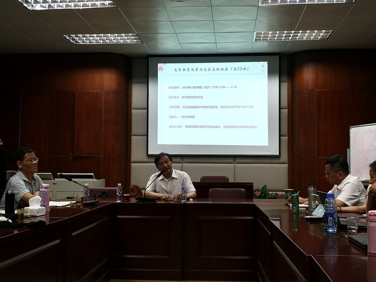 2019年7月20日下午15:00,中国高等教育学会副会长、教育部高等教育司原司长张大良教授到访我院,为我院师生、特别是Ed.D.博士生作了一场题为“牢牢把握全面加强大学的内涵建设、提升办学水平的十五个要素”的学术讲座。本次讲座由王洪才副院长主持,我院师生共计40余人参与了本次讲座。