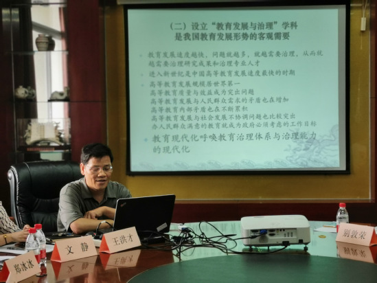 随后,王洪才副院长对创设“教育发展与治理”学科的论证方案进行了具体汇报。他认为,设立“教育发展与治理”二级学科,反映了我国教育发展总体形势的要求、适应了教育学科内部力量整合需要,同时厦大教研院所具备的科研基础、学术平台、师资队伍、人才培养机制和学术传统共同说明了创设此学科的条件已经成熟。紧接着,潘懋元先生、武毅英教授和文静助理教授对新学科设立的初衷和意义做了进一步的补充说明。