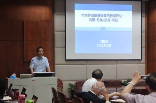 第一位报告人刘振天教授报告的主题为《作为外部质量保障的教学评估:治理·分类·效用·周期》。刘振天教授首先详细介绍了在管理体制改革中应当如何看待评估的问题,他指出管理体制改革与评估存在着较强的线性关系,外部评估是政府行政管理职能的延伸,是对高校实施问责的重要表现。但他也认为,现行评估制度存在诸多弊病,在构建现代治理体系中的作用不容乐观。同时,刘振天教授还提出,不仅要把评估放在管理体制中看待,也要明晰不同利益方对待外部教学评估的立场。其次,刘教授探讨了评估与高校分类的关系,介绍了评估发展的历史和进行分类评估的意义,并分析了进行高校分类评估存在的困难。再次,刘教授谈了自身对教学评估效用的几点看法:一是,从教学评估宗旨和目的看,评估对预期目标达成是有限的;二是,就评估所带来的实际效用看,存在着非常明显的阶段性特点和层级性特征;三是,教学评估并不能对高校教学质量作出准确评价、鉴定和区分。最后,刘教授分析了评估的周期频次成为问题的原因,并探讨了制约评估周期频次的因素,主要包括高校内部质量标准、质量信誉和质量体系完善程度,评估形式及其范围,评估人类的种类和密度等。