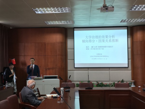 2019年5月13日,广岛大学村泽昌崇教授在502学术报告厅为我院师生开设了题为“大学治理的效果分析——倾向得分·因果关系推断”的学术讲座。本次讲座由覃红霞副院长主持,潘懋元先生、吴薇教授、李国强副教授、文静助理教授、林敏助理教授、陈斌助理教授及部分硕博研究生参加了本次讲座。