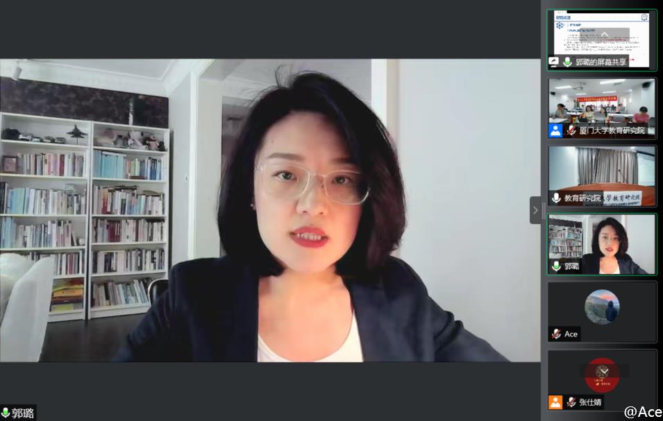 2022年5月19日下午,教育研究院44年院庆学术周研究生论坛(第三场)在学生公寓海韵八6楼报告厅举行。郭璐等9位研究生围绕“大学生创业能力”“教育学研究发展”“博士生培养”“中外合作办学”“比较视域的根本逻辑”“大学生心理韧性”“评教行为”等核心议题作学术报告。教育研究院师生、院友以及各兄弟高校的师生以线上线下相结合的方式参与此次论坛。本次论坛由博士研究生张东亚和硕士研究生毕昊杰主持,郭一蓉副教授和黄依梵助理教授作点评。