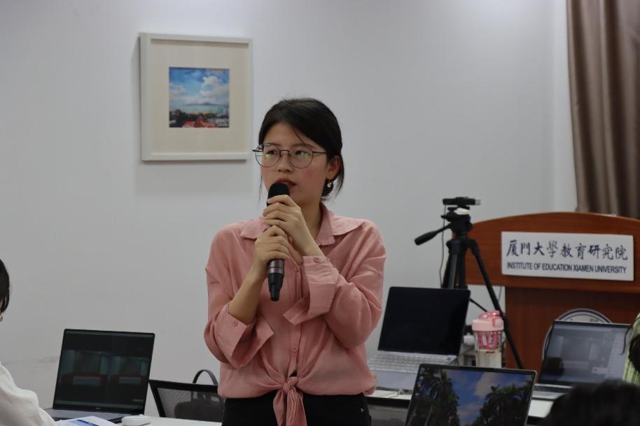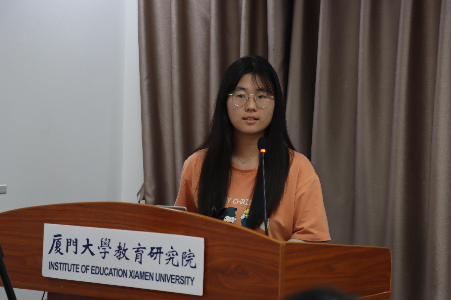 2021级硕士生冷金艳作题为《学生为何打高分?——高分评教行为发生机制探究》的报告。该研究通过“集体高分”的评教现象,以《深化新时代教育评价改革总体方案》为切入点,针对Z大学的高年级学生进行访谈,得出“信号”、考试经验、人情关系、自我保护等作为主要影响因素的研究结论,并提出相应建议。