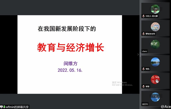 闵维方教授从经济增长的重要性、教育同经济增长的关系问题引入,就教育促进经济增长的作用机制进行了深入探讨。他认为,一是教育通过促进全要素生产率的提高,促进经济高质量增长。新阶段经济发展的要求是提高经济增长的战略和效益,而全要素生产率是提高经济增长质量和效益的关键。二是通过提高劳动者素质,推动产业结构升级,促进经济增长。产业升级是提高经济增长质量和效益的又一关键。三是教育可以加快我国城镇化进程,而城镇化是拉动经济增长的重要动力。新发展阶段要求走共同富裕之路,而新型城镇化有利于缩小城乡差别,促进共同富裕。四是教育通过促进公平,进而增加消费,扩大内需,拉动经济增长。公平又有质量的教育,有助于调节收入分配格局,有利于阻断贫困的代际传递,进而促进共同富裕,扩大内需。五是教育有利于资源节约型、环境友好型的绿色经济增长。新阶段经济发展的要求是绿色、可持续的经济增长,教育在绿色经济增长中具有重要作用。