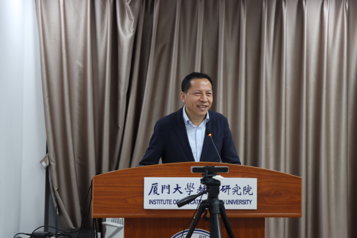 2022年5月18日晚上,教育研究院44周年院庆学术周第二场专题报告暨高教讲座在学生公寓海韵八6楼学术报告厅顺利举行。十三届全国政协常务委员兼副秘书长、民进中央副主席朱永新教授为大家做了题为《关于大学本科教育的几点思考》的主旨演讲。报告会由教育研究院党委书记刘振天教授主持。
