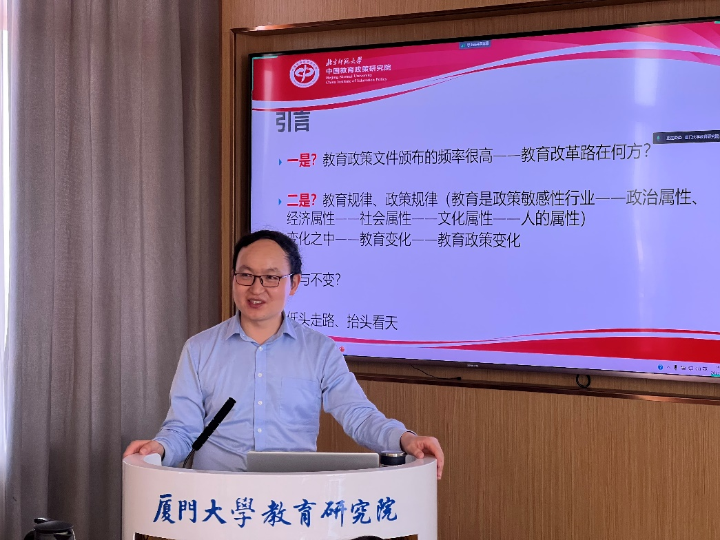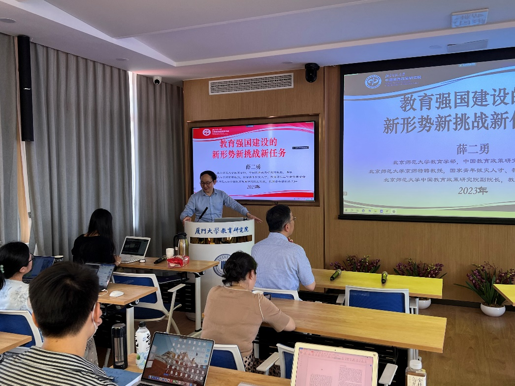 2023年5月27日下午,北京师范大学教育学部、中国政策研究院薛二勇教授为我院师生作了题为《教育强国建设的新形势新挑战新任务》的学术报告。百余名师生通过线上线下方式参会,报告会由史秋衡教授主持。