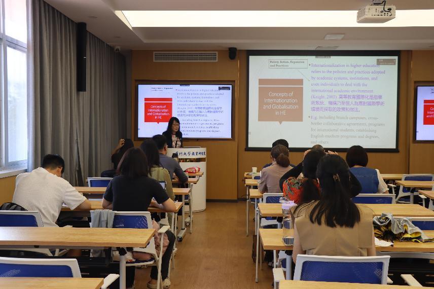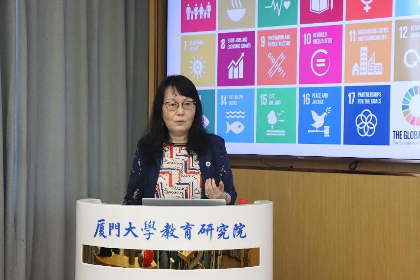 报告伊始,金立贤教授引入了高等教育国际化、全球化和宇宙化的概念。她指出,高等教育国际化是学术系统、机构乃至个人为应对国际学术环境变化而采取的政策和做法;高等教育全球化是一个关注思想、资源、人员、经济、价值观、文化、知识、商品、服务和技术在世界范围内流动的过程,和21世纪的经济和学术发展趋势有密切关联。因此,国际化和全球化是高等教育系统演变的两个方面,前者强调不同国家人与人之间的互动,后者则主要关注世界上与经济相关的关系和交流网络。而宇宙化是一种新的世界视野,凸显了为实现人类共同发展目标而努力的人文品质,中国“天人合一”思想便是宇宙化观点的启蒙。