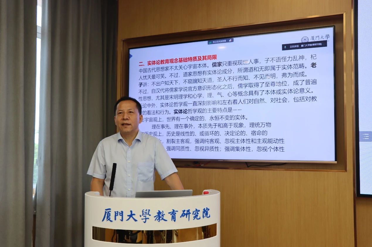2023年10月9日上午,我院党委书记、高等教育发展研究中心主任刘振天教授为师生作了题为《从实体论到实践论:创新指向下教育观基础反思与构建》的学术报告。200余名校内外师生通过线上线下方式参会。