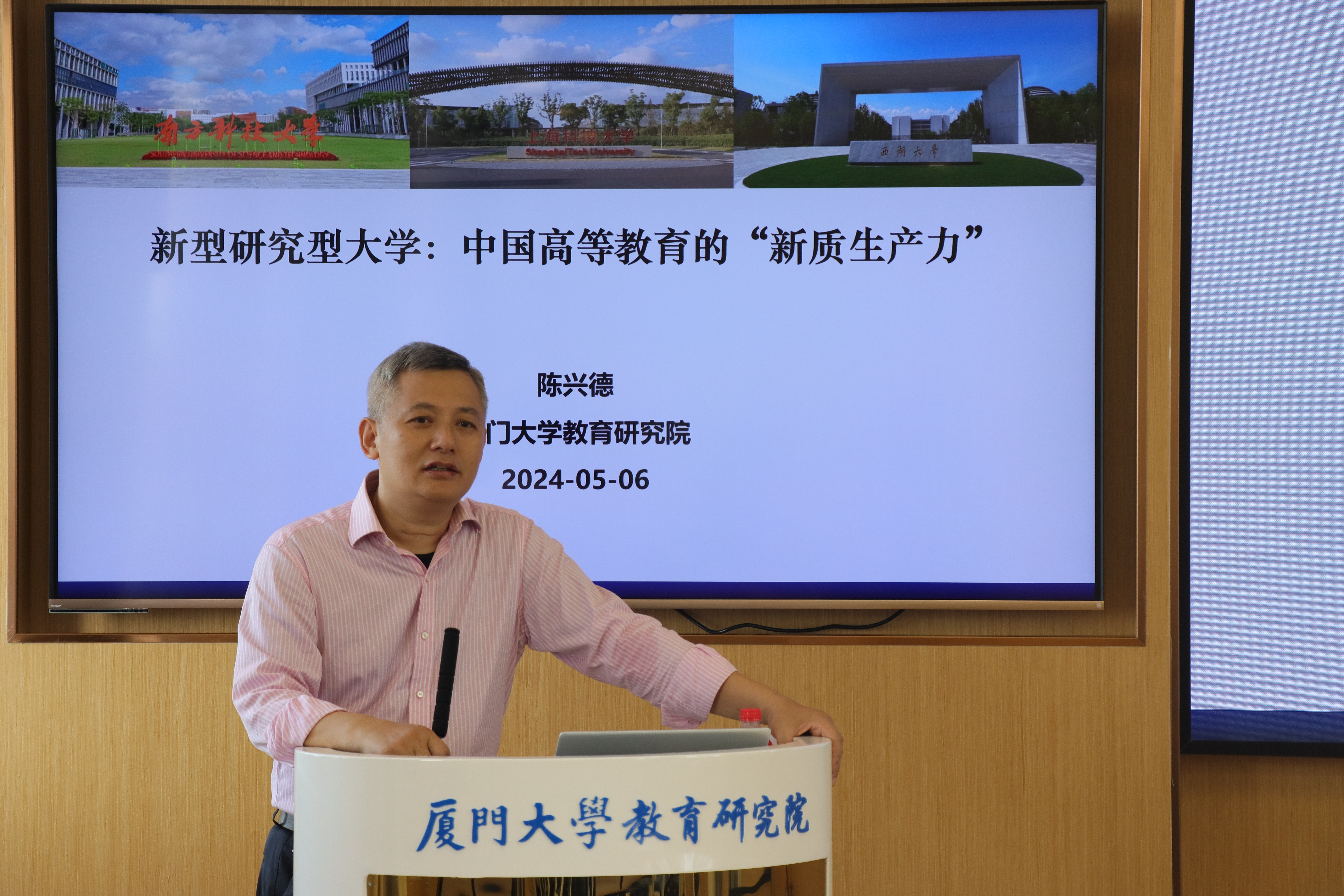 2024年5月6日上午,厦门大学教育研究院副教授陈兴德为师生作了题为《新型研究型大学:中国高等教育的“新质生产力”》的学术报告,50余名师生线下参会。