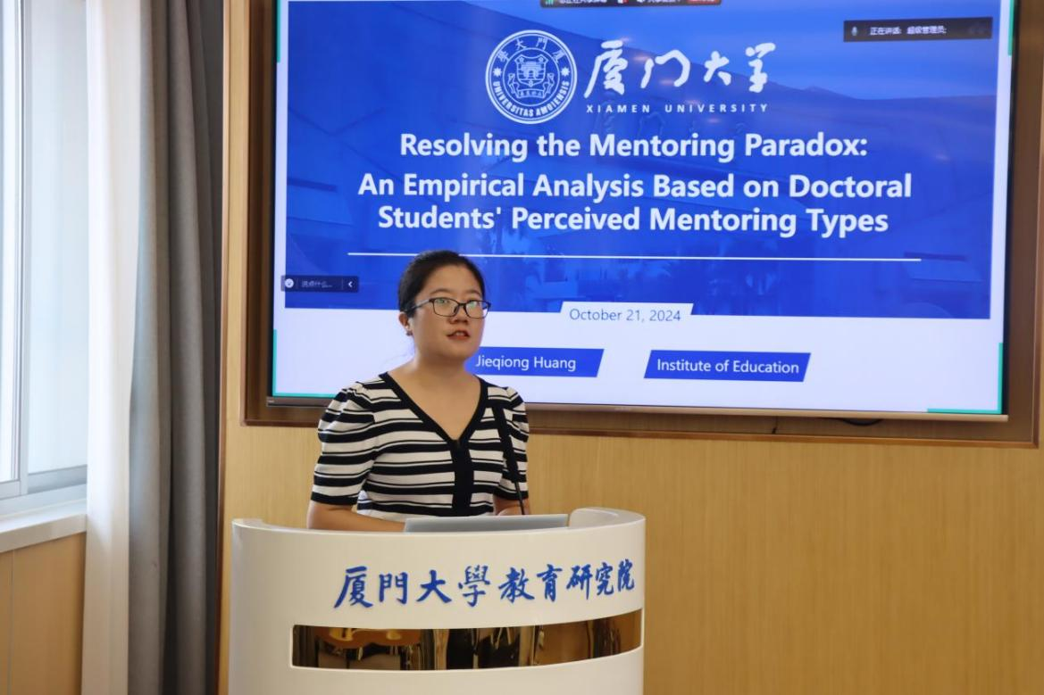 2024年10月21日上午,我院6名在暑假期间出国交流的研究生围绕参加国际学术会议经历与学术报告内容作了专场分享。本次报告由厦门大学高等教育发展研究中心副主任吴薇教授和曹雪萌助理教授进行点评,近百名师生现场参与。学术报告和点评交流采用中英双语。