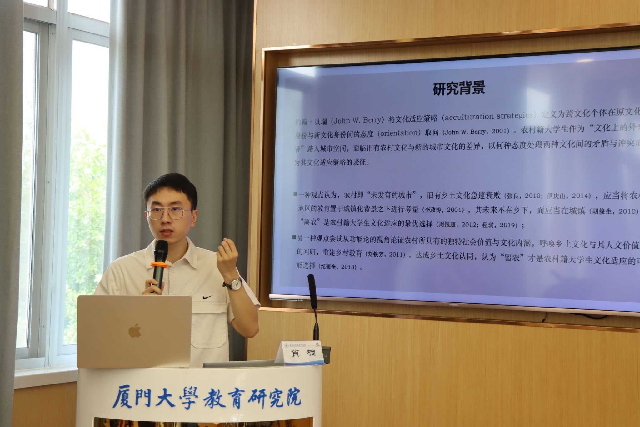 2025年4月21日上午,厦门大学教育研究院助理教授肖桐老师为我院师生作了题为《穿越经验的边界:农村籍大学生文化实践路径的历时性研究》的学术报告,我院近百名师生现场参与。
