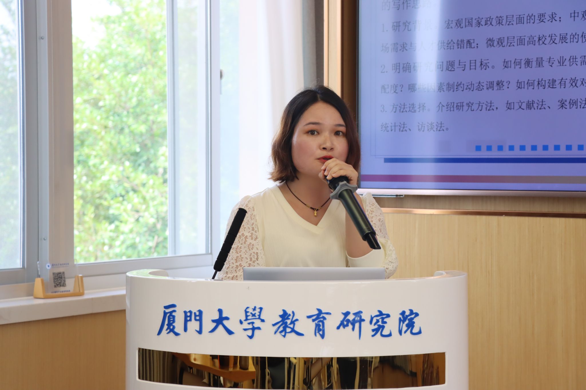 广西师范大学访学博士生罗圣梅作了题为《供需适配视角下地方高校专业动态调整机制研究》的报告。研究基于贵州省典型高校案例,深入探讨地方高校专业结构与区域经济发展的适配机制,系统分析了专业动态调整的路径与运行逻辑。通过构建专业-产业匹配度评估模型以及地方高校专业结构与区域经济社会发展适配机制的系统结构,进而提出多方协同的专业优化策略,为提升地方高校服务区域发展能力提供了理论参考与实践路径。