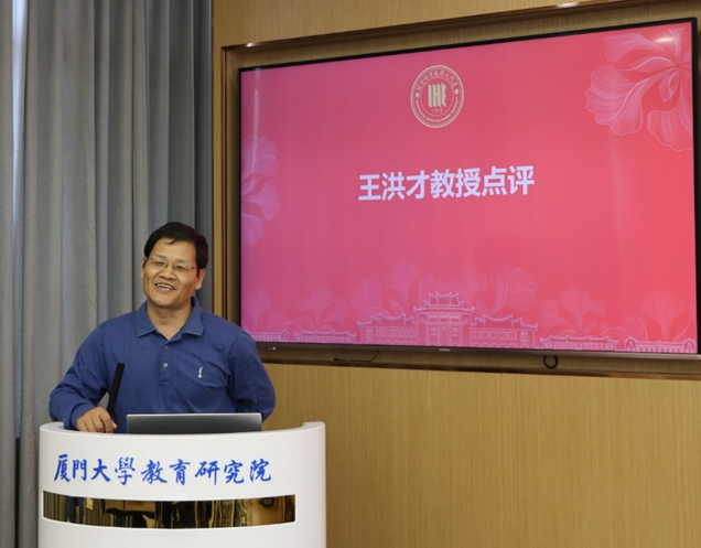 在交流讨论环节结束后,王洪才副院长对研习社成员、各党支部代表的读书报告进行点评。他肯定了同学们精神饱满、斗志昂扬的读书学习状态,肯定了读书心得的思想碰撞,也指出了存在的不足之处。他鼓励同学们在学习党的二十大精神热潮中,要能够结合专业学习,更有力度、更有深度、更有高度地解读习近平总书记关于教育的重要论述思想,为推进中国式教育现代化、建设社会主义现代化教育强国贡献专业力量。