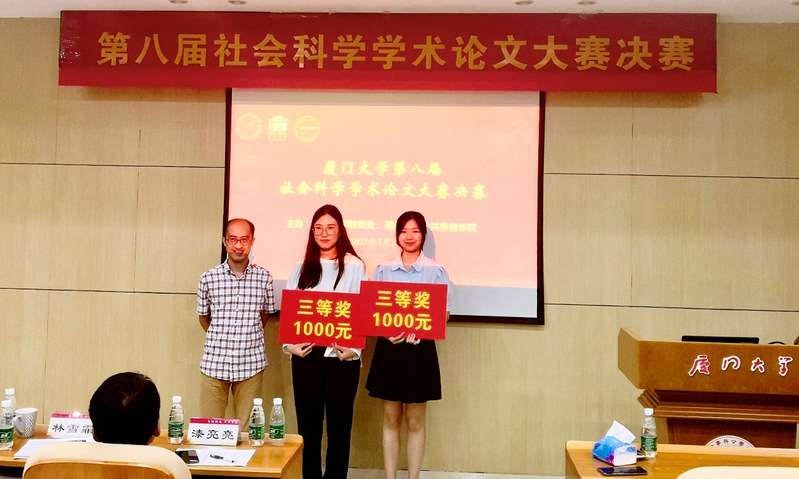 据悉,厦门大学第八届社会科学论文大赛是由厦门大学教务处和公共事务学院联合举办的学术竞赛,主题围绕疫情防控中社会、经济、人文等领域出现的新现象、新问题展开。大赛自2020年12月报名起,共收到来自厦门大学公共事务学院、社会与人类学院、法学院、国际关系学院、管理学院、经济学院、新闻传播学院、台湾研究院等18个学院,以及清华大学公共管理学院、北京大学软件与微电子学院和广西大学商学院等院校的共70支队伍、279名不同年级的本科生和研究生报名参加。最终,共有20篇论文进入决赛。本次学生团队获奖也是实现了学院在此类比赛中“零”的突破。