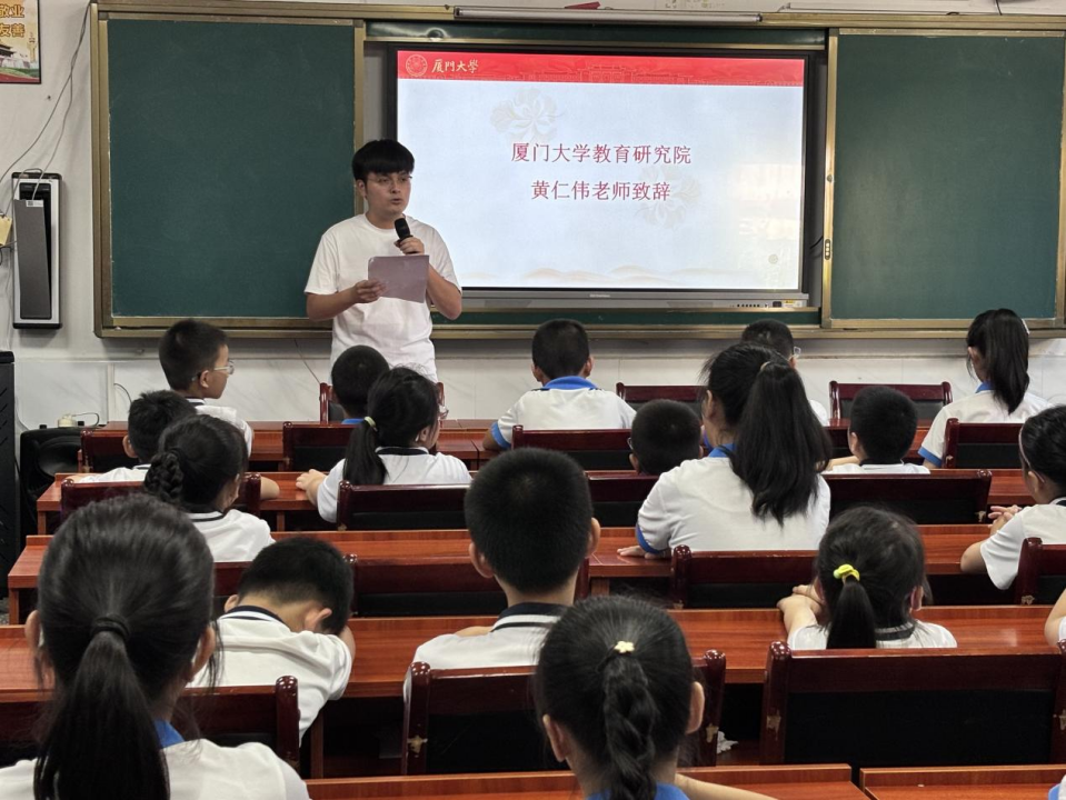 在龙岩市新罗区团委的大力支持下,2024年7月8日上午,厦门大学教育研究院“榕树厦”暑期社会实践队走进龙岩市第五实验小学,开展为期一周的支教服务。