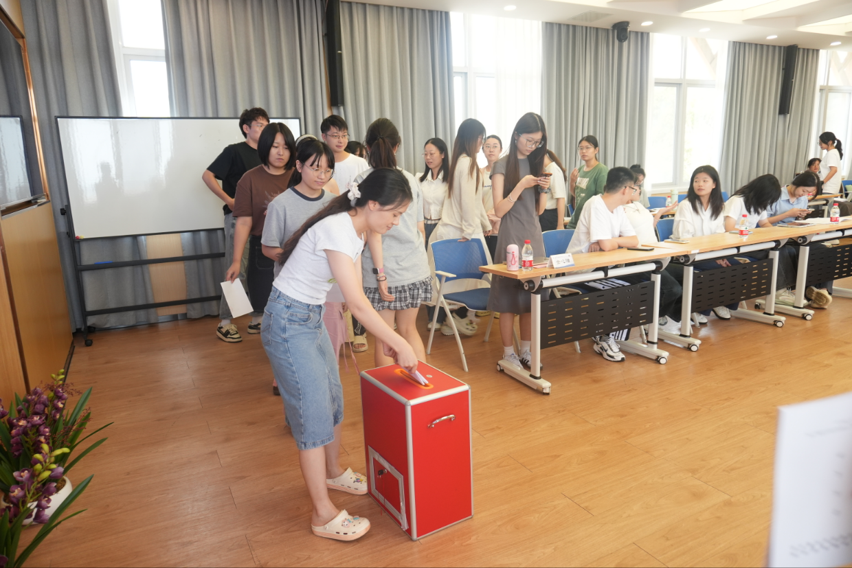 在第二十届团总支、研究生会主席团候选人竞选环节,候选人依次进行竞选演讲。他们展现了积极服务同学的决心,并对今后工作的开展提出了自己的设想。与会代表通过现场投票选举产生了教育研究院第二十届团总支、研究生会主席团成员。