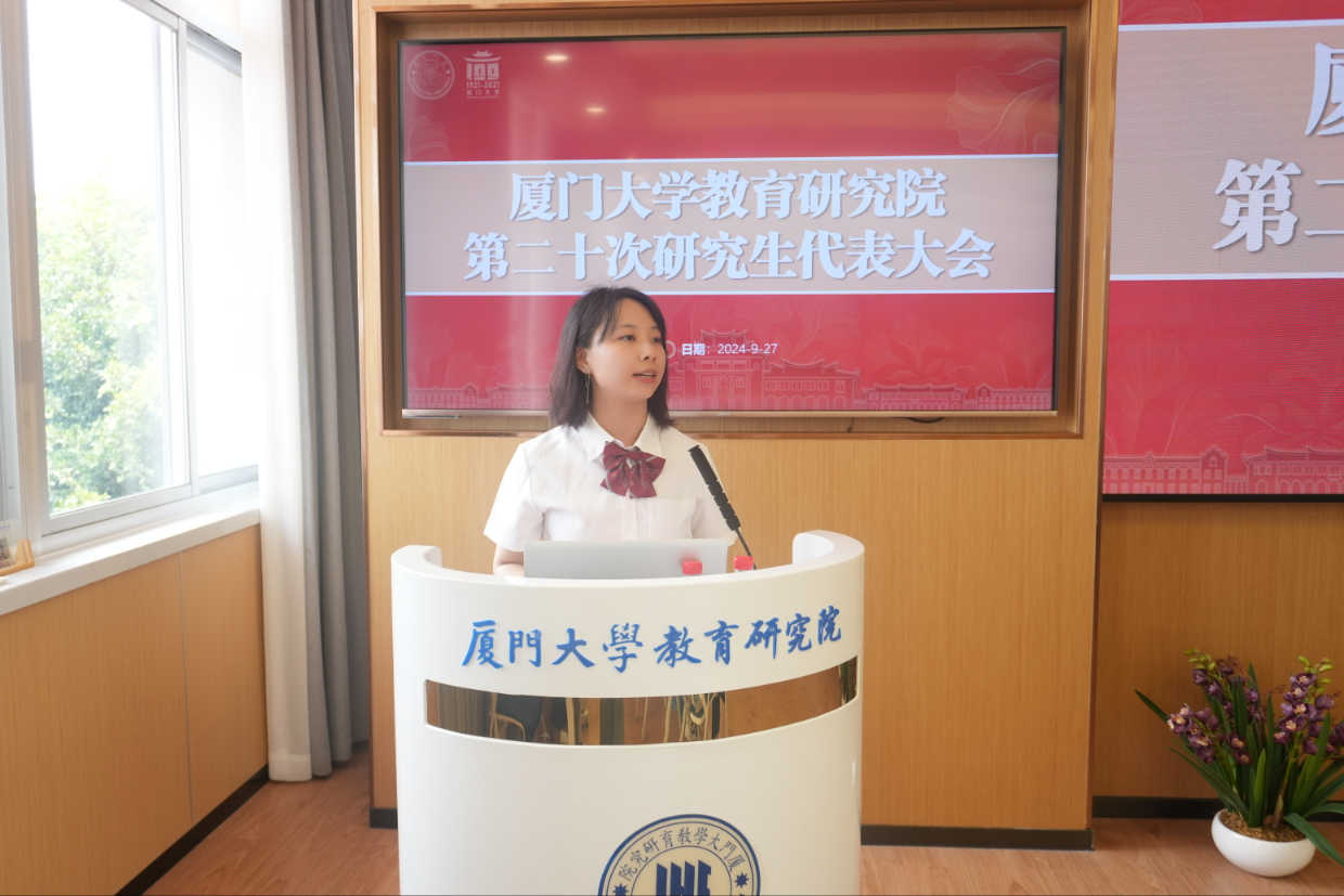 2024年9月27日,厦门大学教育研究院第二十次研究生代表大会在黄宜弘楼502报告厅举行。院党委副书记姚有新、团委书记赖珊珊、校研究生会主席邸子瀛、各兄弟学院研究生会代表以及教育研究院第二十次研究生代表大会代表参加了本次大会。会议由院第十九届研究生会办公室负责人杨楠同学主持。