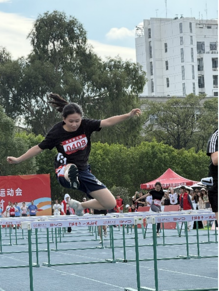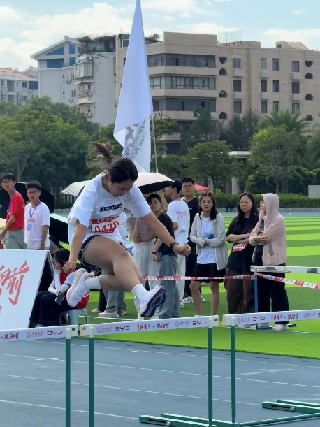 运动员们助跑、起跳、腾空、落地,一系列动作行云流水,宛如一群轻盈的飞燕。陈佳妮、何欣瑞、陈秋静分别在跳高、跳远比赛中奋力拼搏。