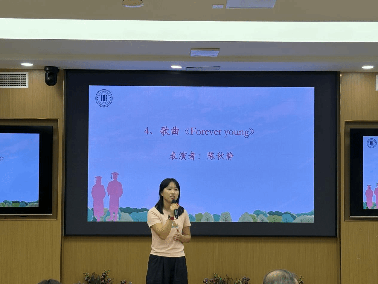 2024级硕士生陈秋静的独唱表演了《Forever young》。她清澈纯净的嗓音将这首关于青春与梦想的歌曲演绎得格外动人,让观众仿佛置身于青春的记忆长河中。