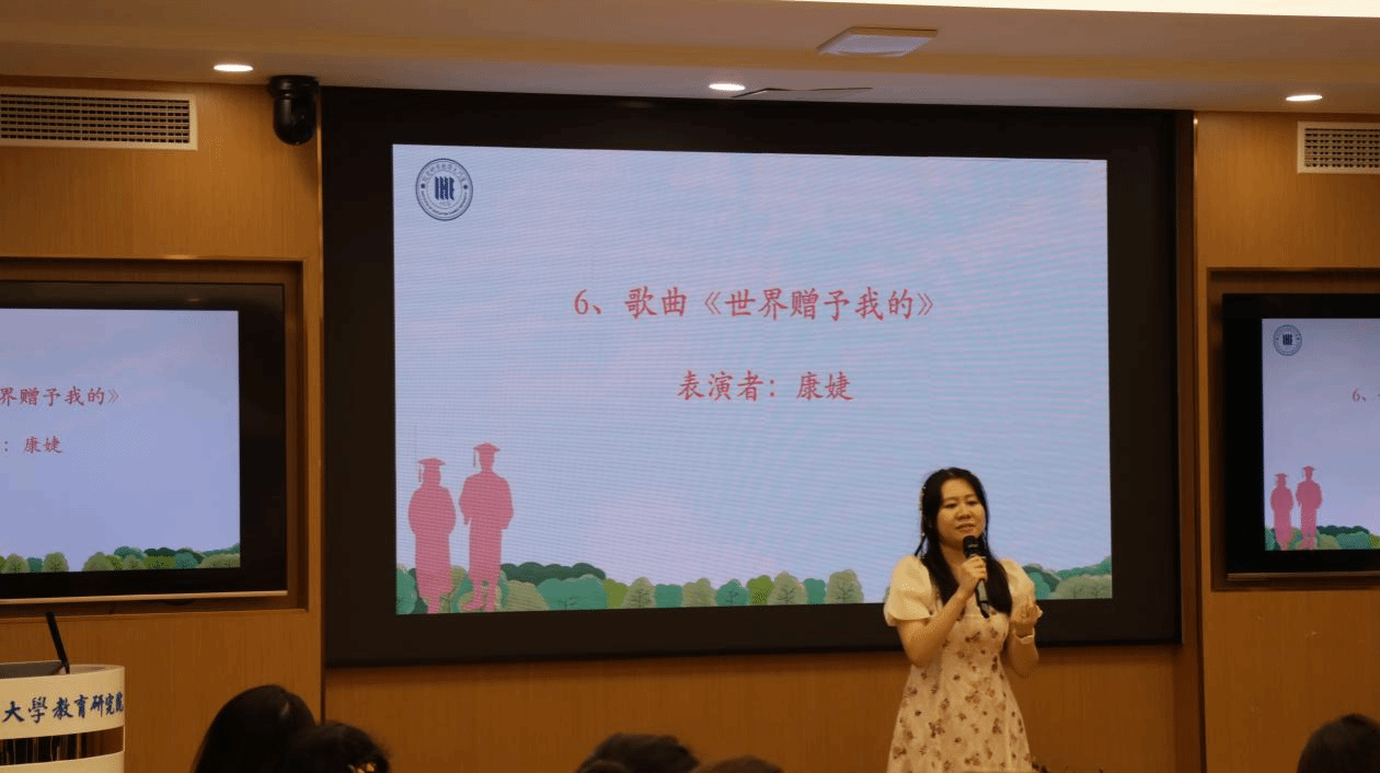 歌曲《世界赠予我的》由2022级硕士生康婕同学的独唱表演。她以温暖细腻的声线,将这首感恩生命的歌曲诠释得感人至深。
