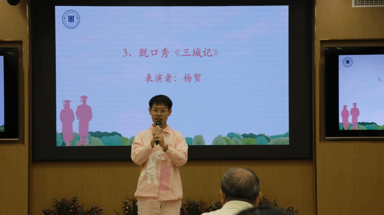 来自澳门城市大学的访学博士生杨贺为晚会带来原创脱口秀节目。他以幽默风趣的语言,生动讲述了在厦门、澳门、上海三地求学与工作时的趣事见闻。
