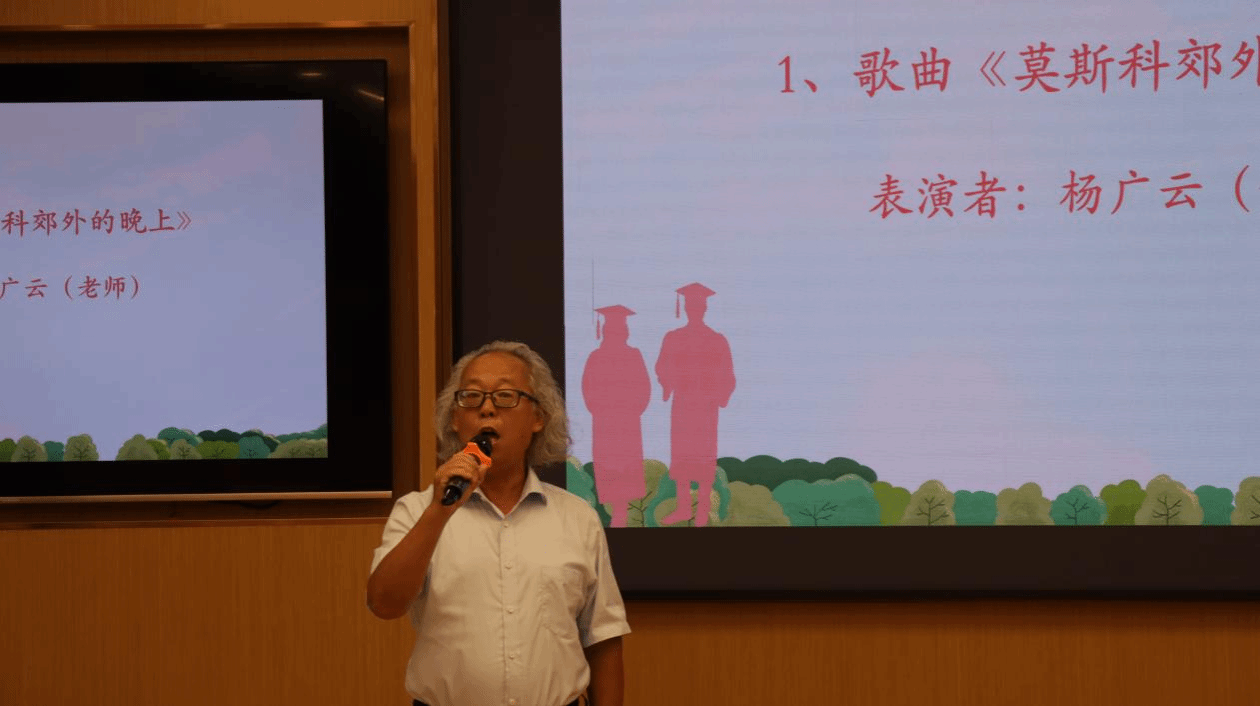 杨广云老师以浑厚深情的嗓音演绎了俄罗斯经典民谣《莫斯科郊外的晚上》。作为开场节目,杨老师将这首充满怀旧情怀的歌曲诠释得淋漓尽致,瞬间将观众带入静谧美好的意境中。