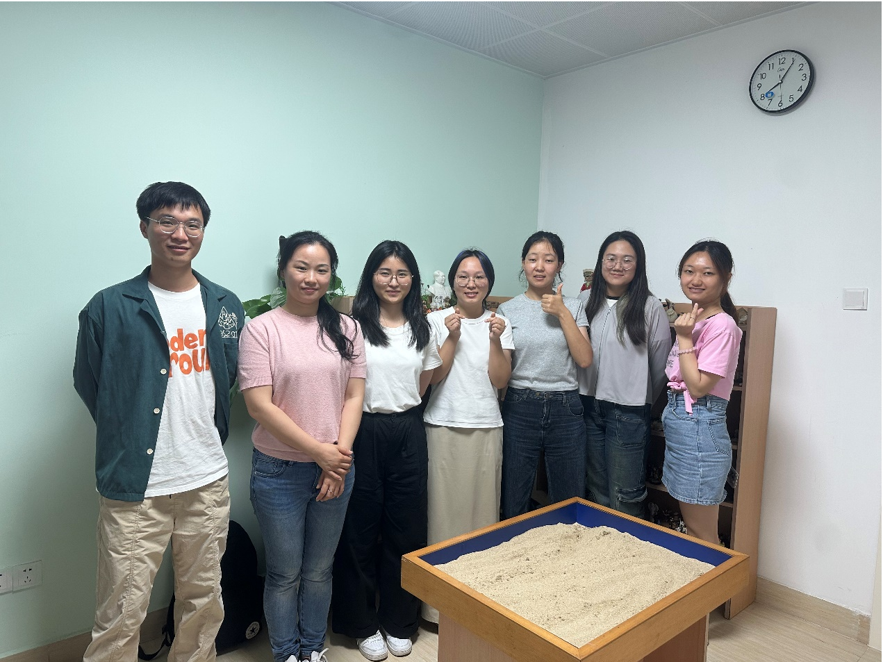 在系列活动过程中,朱老师带领大家以探索“亲密关系”为契机,共同开启了自我认识、疗愈与成长的旅程。通过分小组角色扮演、绘画心理工作、沙盘游戏等方式,让大家深刻感受了亲密关系以及如何维系亲密关系。本次心理团辅最受欢迎的活动——团体沙盘体验,帮助大家增进了对自己和他人的了解,在交流中,小伙伴们捕捉到灵感迸发的喜悦,也享受到与他人不谋而合的特别体验。