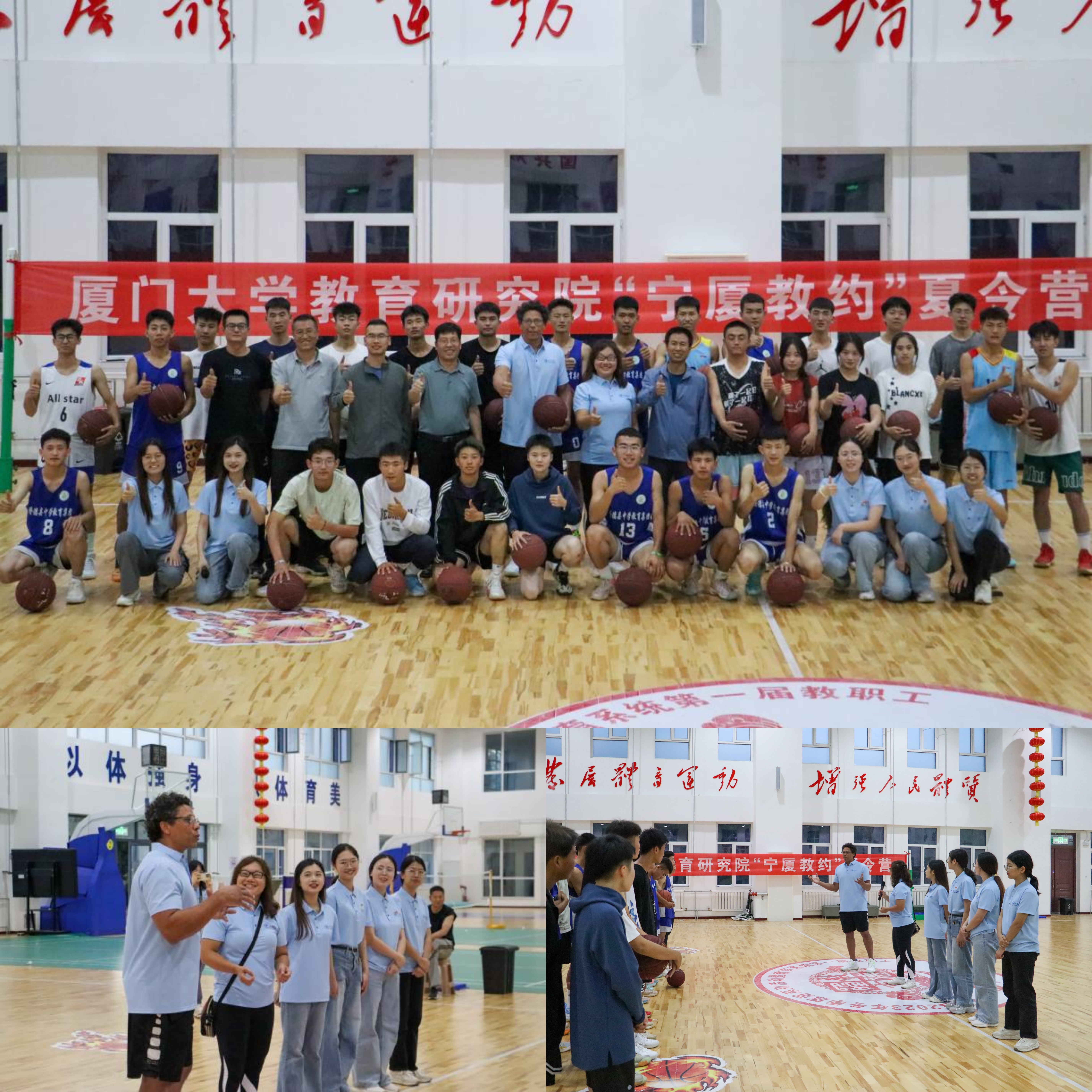 为响应“体教融合”政策精神,增强乡村青年的身体素质,促进中外文化交流,实践队筹办了以“放飞梦想,篮球传情”为主题的美国大学外教中英双语篮球文化体验营,特别邀请美国南伊利诺伊大学教师、美国篮球协会认证少年篮球教练史密斯博士担任教练,蔡秀英与六名实践队队员作为助教全程协助。