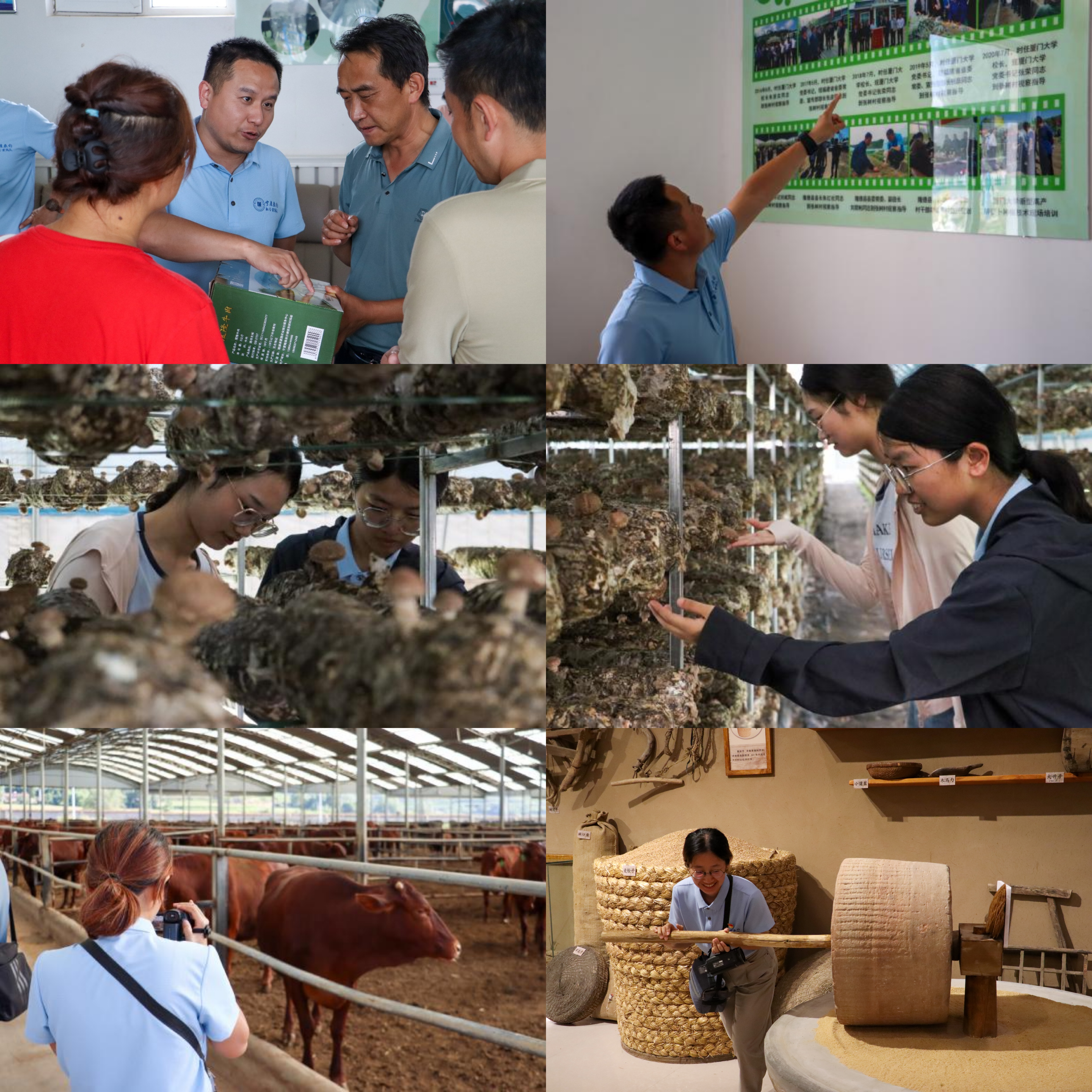 在沙塘镇,实践队队员先后走访了张树村养牛合作社、扶贫车间、冷凉蔬菜种植基地和菌菇种植基地等。张树村是厦门大学对口帮扶村,实践队吕铖老师曾于2015年至2018年在张树村挂职第一书记,他作为厦大帮扶隆德的“拓荒者”,为隆德县和张树村脱贫攻坚做出了突出贡献,于2021年5月荣获福建省脱贫攻坚先进个人。