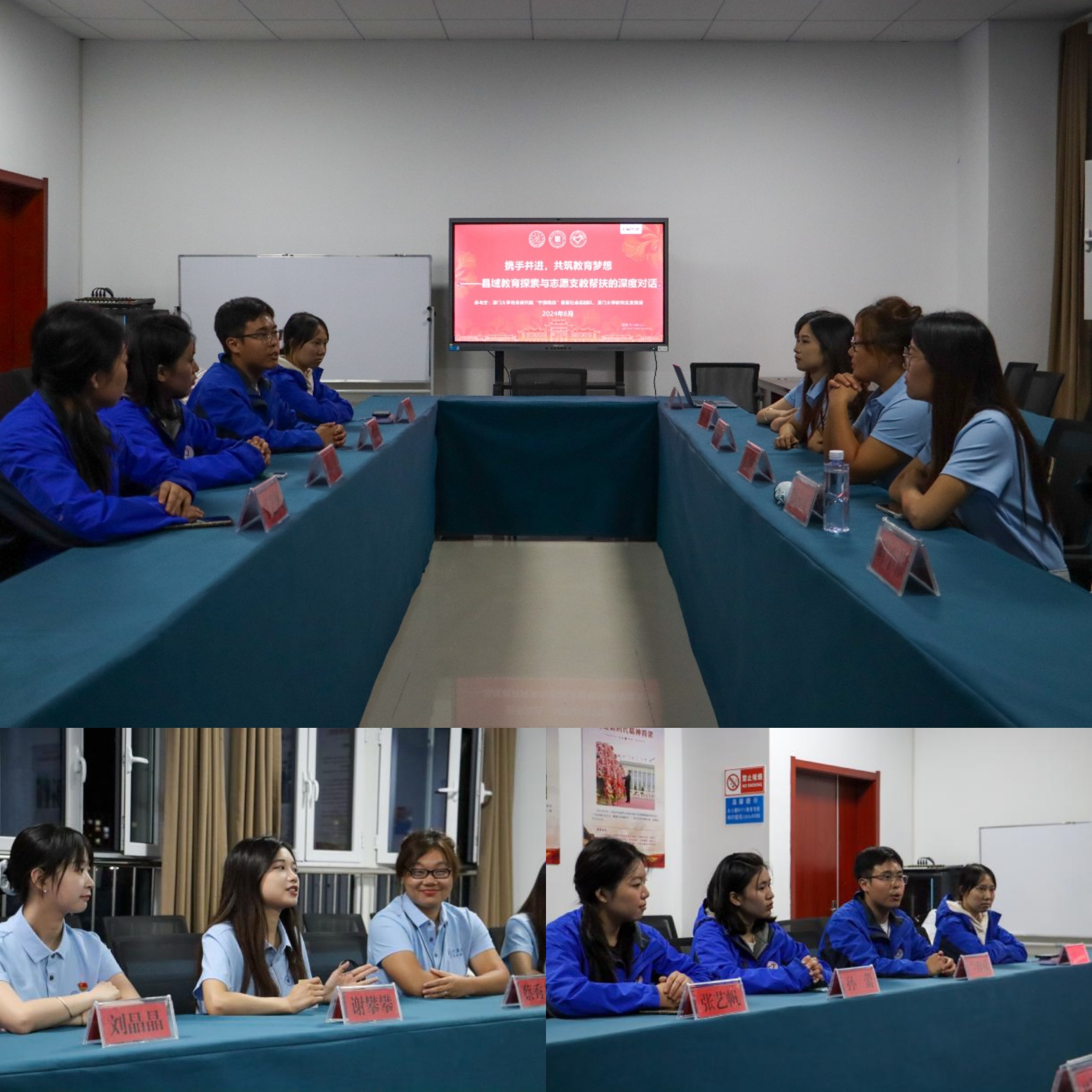8月2日,实践队与厦门大学第26届研究生支教团隆德分队,围绕“县域教育探索与志愿支教帮扶”主题进行深度对话。与会人员结合实践情况,分享了收获与感想,并相商携手共赴未来,协力助推隆德教育振兴。