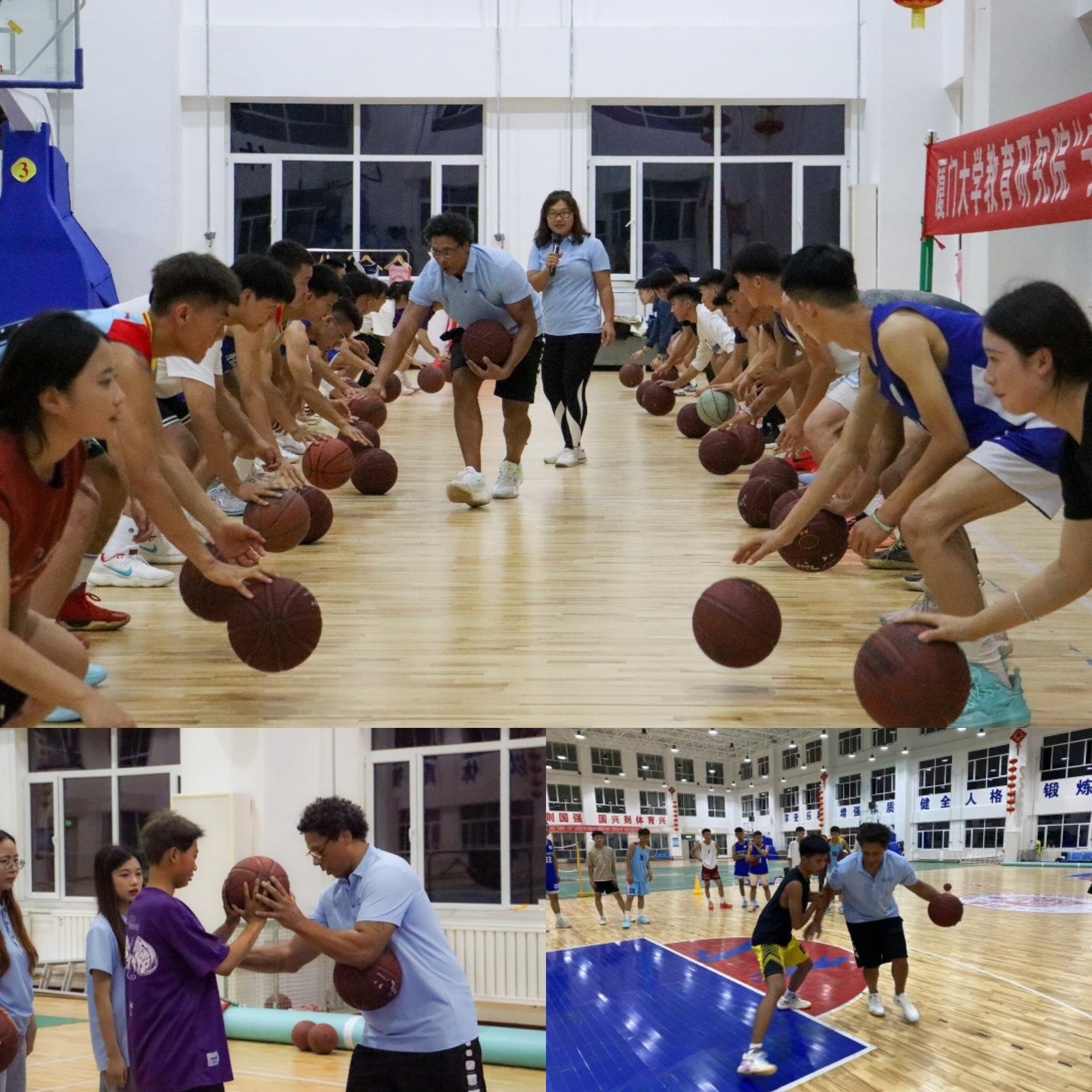 史密斯博士根据学员们情况,量身打造了训练计划,从基础的低位运球、交叉运球和背后运球等运球技巧,到进阶的三步上篮、防守策略和进攻策略等,每一个动作都亲身示范、力求精准。他以沉浸式的双语教学与学员们进行跨文化交流,并组织激烈的师生对抗赛进一步提升学员们的篮球技能。