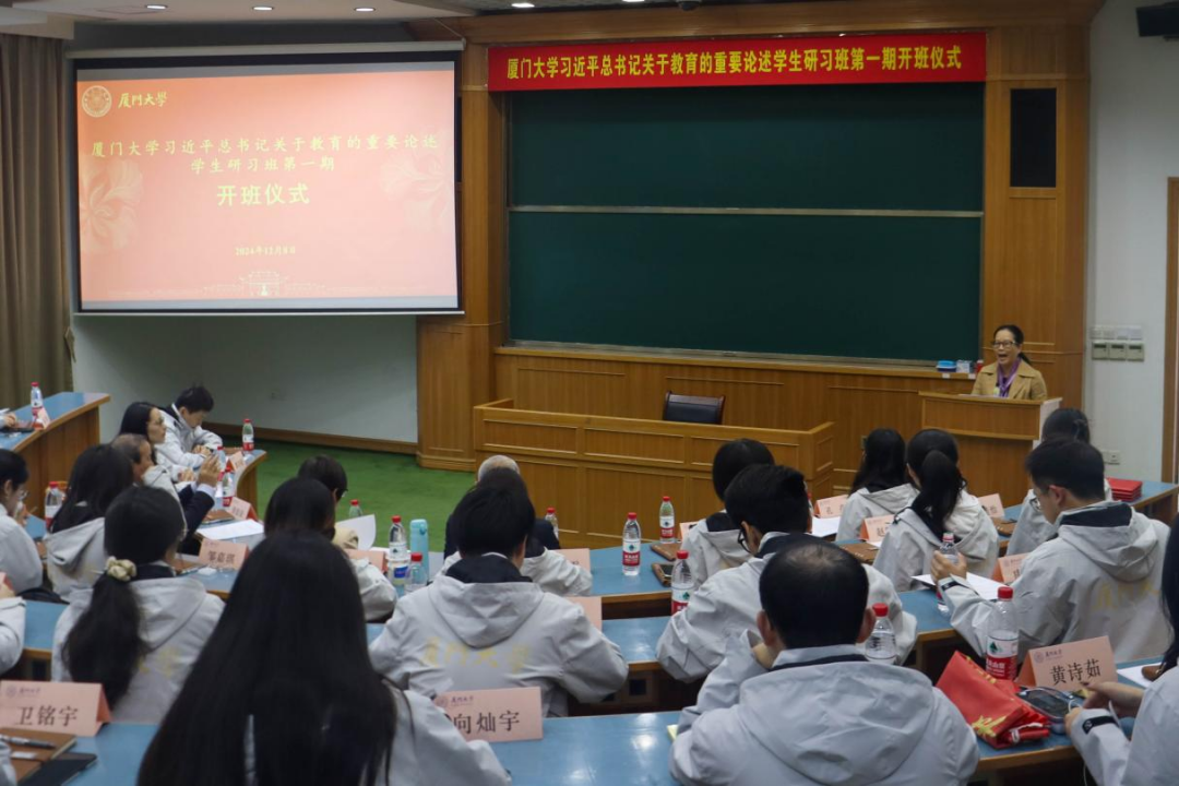 12月8日上午,由教育研究院、建筑与土木工程学院等单位联合承办、作为厦门大学习近平新时代中国特色社会主义思想学生研习班10个主题班之一的厦门大学习近平总书记关于教育的重要论述学生研习班(第1期)开班仪式在思明校区集美二201报告厅举行。厦门大学学生工作部(处)部(处)长洪春生,教育研究院院长别敦荣,研习班班主任、教育研究院党委副书记姚有新、建筑与土木工程学院党委副书记邹海燕,研习班指导老师代表教育研究院徐岚教授、建筑与土木工程学院孔卉副教授、郭吉超助理教授及厦门大学习近平总书记关于教育的重要论述学生研习班全体学员等参加了开班仪式。仪式由邹海燕主持。