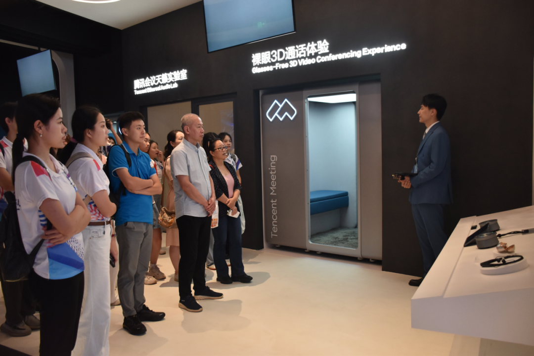 14日下午,研习班师生前往位于深圳市南山区的腾讯滨海大厦进行了企业参观活动。跟随着工作人员的讲解,研习班师生队员系统参观了腾讯发展历程展厅、数字文化展区、产业数字化展区及游戏展区,通过沉浸式体验,切身感受了腾讯独特的企业文化、创新产品生态和充满活力的工作氛围,真切体会到互联网头部企业的卓越风采。穿梭于充满设计感的开放式工位、休闲讨论区、智能会议室等特色空间,队员们切身感受到了腾讯“用户为本,科技向善”的企业文化。