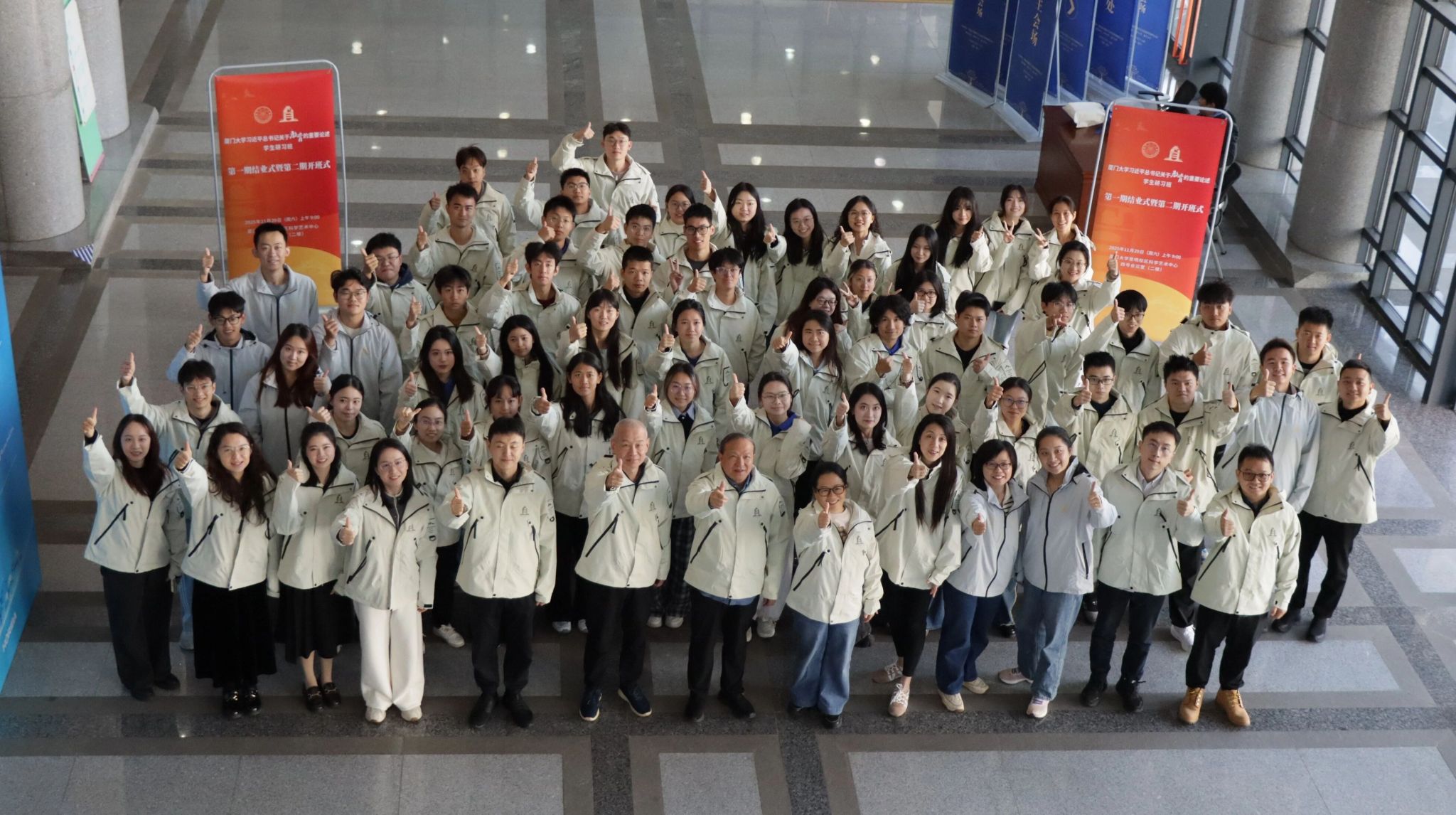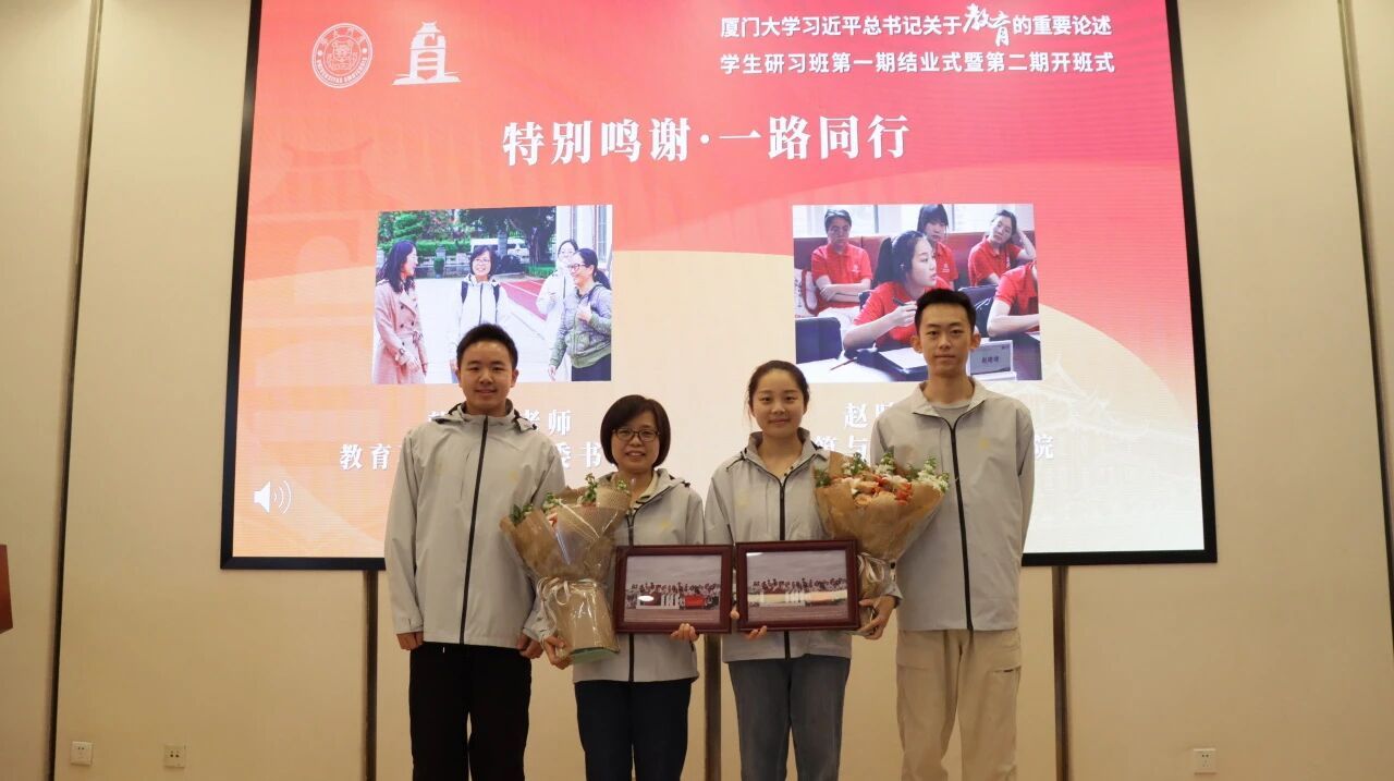 结业式上,全体师生向为研习班创建作出突出贡献,因工作岗位调整、离开研习班工作组的教育研究院原团委书记赖珊珊、建筑与土木工程学院原辅导员赵晴晴两位项目秘书表达感谢。全场以热烈掌声致敬她们的奉献精神,彰显研习班薪火相传、温情永驻的育人传统。
