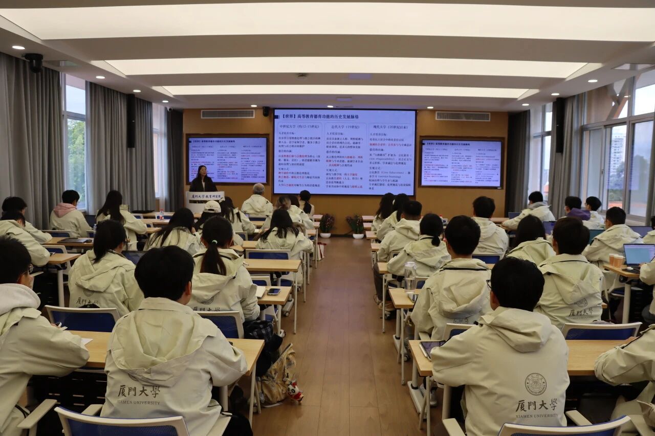 2025年12月27日上午,厦门大学习近平总书记关于教育的重要论述学生研习班(第二期)第二场专题讲座在黄宜弘楼502报告厅开讲。厦门大学高等教育发展研究中心主任、教育研究院鲍威教授为学员作题为《新时代高校立德树人根本任务与大学生道德教育》的讲座。研习班班主任、教育研究院党委副书记姚有新和建筑与土木工程学院党委副书记邹海燕,研习班指导老师、教育研究院易梦春助理教授及研习班全体学员参与学习。