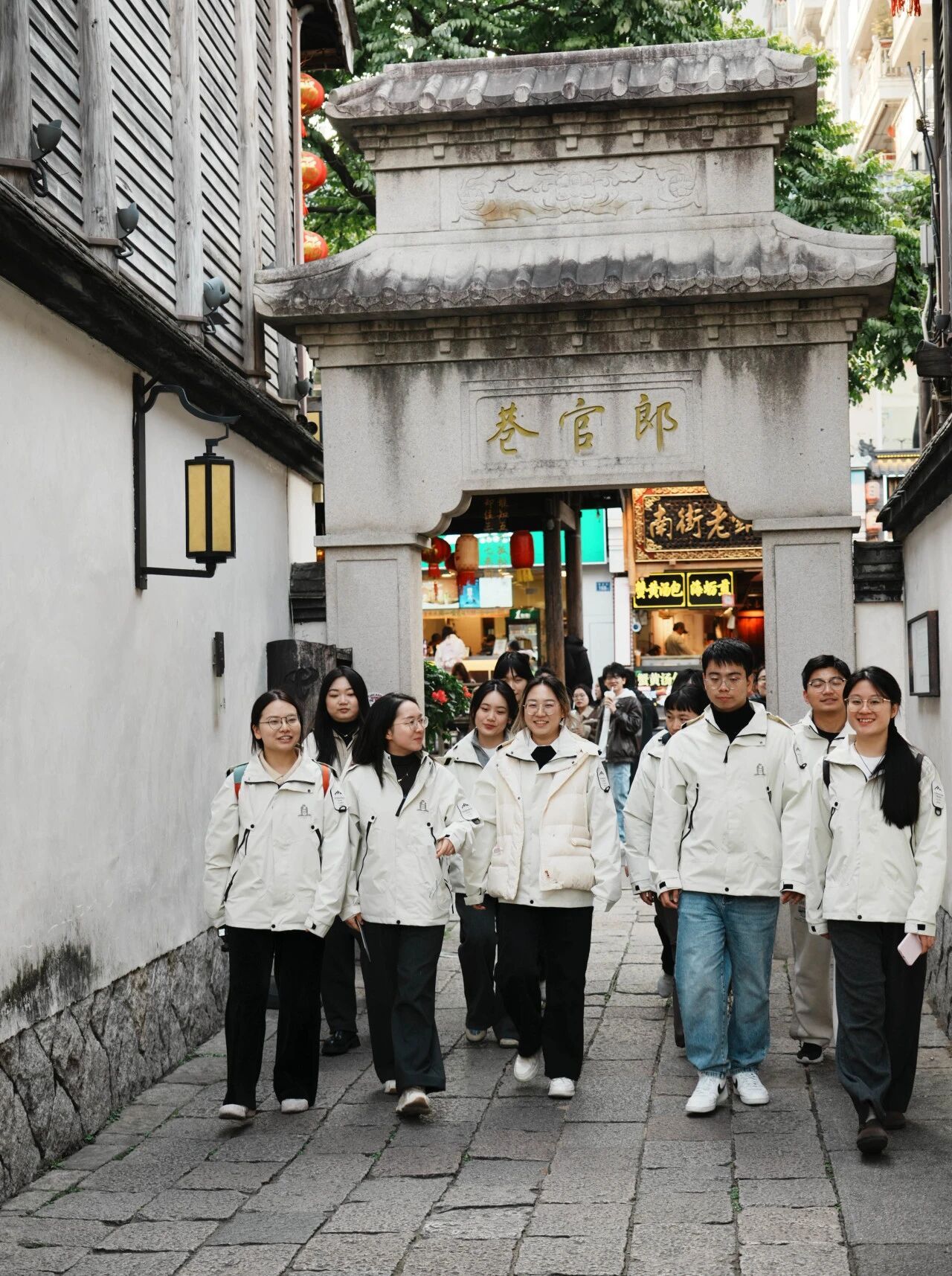 循着2021年习近平总书记考察三坊七巷的足迹,队员们重走领袖路线,来到福州市三坊七巷历史文化街区。研习班师生分成四个小组,围绕各自确定的调研主题,结合实地观察、深度访谈等形式开展实践调研。大家走进纵横交错的坊巷深处,在青石板与马鞍墙之间读懂历史、对话时代。