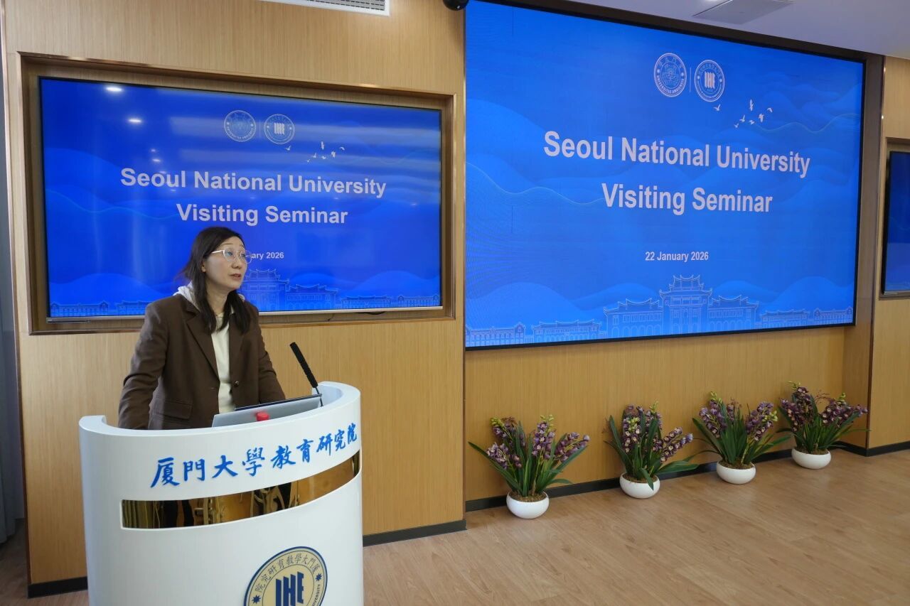 首尔大学教育系系主任Jung Cheol SHIN教授代表韩方致辞。他详细介绍了首尔大学教育系在BK21 (Brain Korea 21) FOUR项目支持下成立的“创新与共存教育研究中心”,以及学院主办的 SSCI期刊《亚太教育评论》(Asia Pacific Education Review)和KCI期刊《亚洲教育研究》的发展情况。他特别提到了即将于2026年7月举办的第26届国际教育研究会议(ICER),并诚挚邀请厦大学者共襄盛举。随行韩方学者也就各自在教育心理、特殊教育及课程研究等领域的最新进展进行了分享。