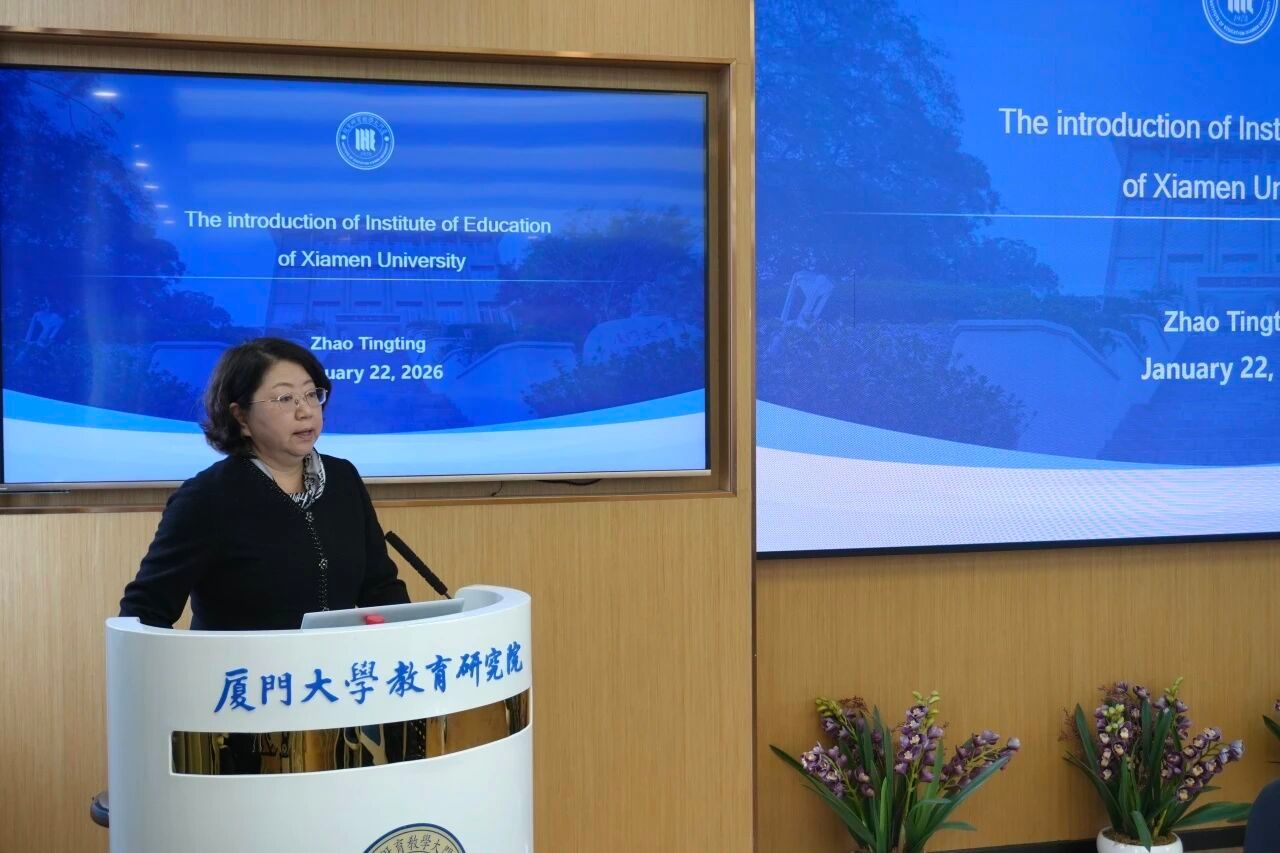 在随后的院情介绍环节,赵婷婷教授从发展历程、组织架构、研究领域、学位项目、国际合作及未来展望等六个维度,系统介绍了厦门大学教育研究院的情况。她提到,我院溯源至1921年成立的教育学科,创下中国高等教育研究领域多个“第一”,目前与全球30余所顶尖高校建立了稳固的合作关系。