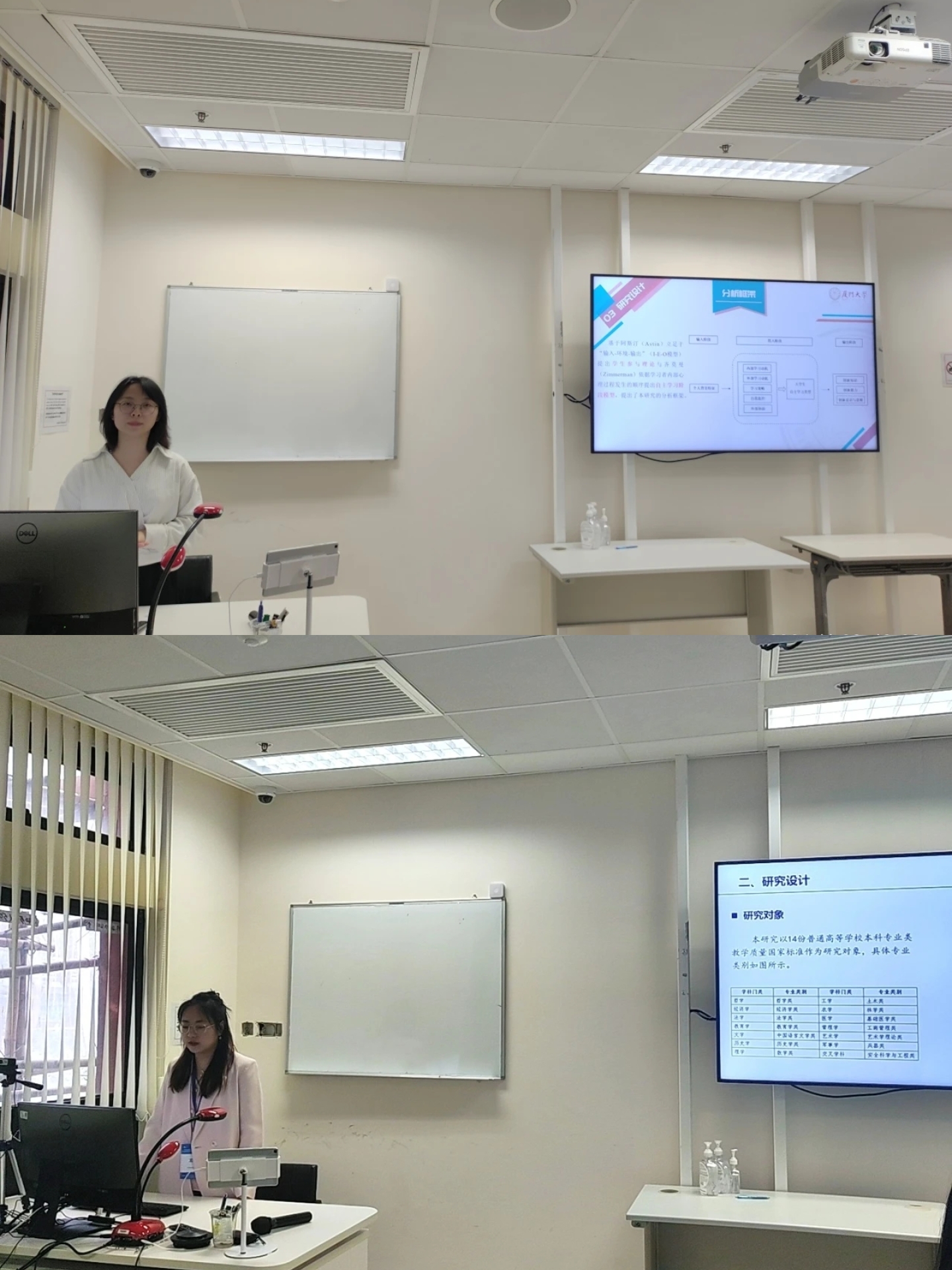 我院硕士生杨楠、王佳分别作了《大学生自主学习与创新发展研究:国际经验与中国实践》《全球可持续发展教育背景下的中国实践与未来展望——基于本科教学质量国家标准的分析》的报告。