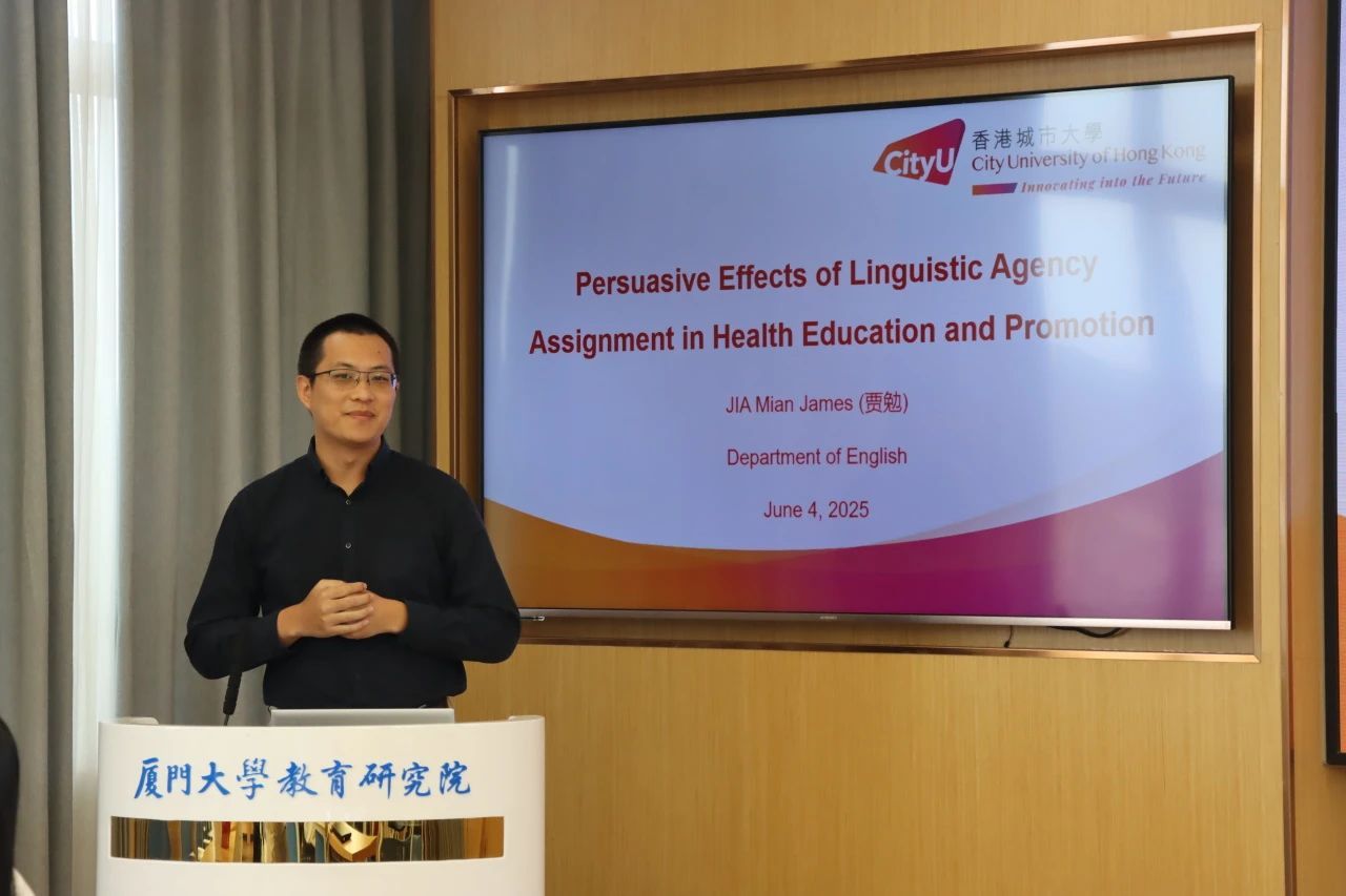 紧接着,贾勉助理教授探讨了健康传播中如何通过调整信息表述的“施事性指派”(agency assignment)影响公众对健康信息的接受度。研究发现,将健康相关话语赋予“施事性”的语言结构相比以人类为主语的表述,公众对健康威胁和应对措施有效性的认知会显著增强,从而更倾向于采取积极行为。该研究为公共卫生传播的策略设计提供了理论支持。